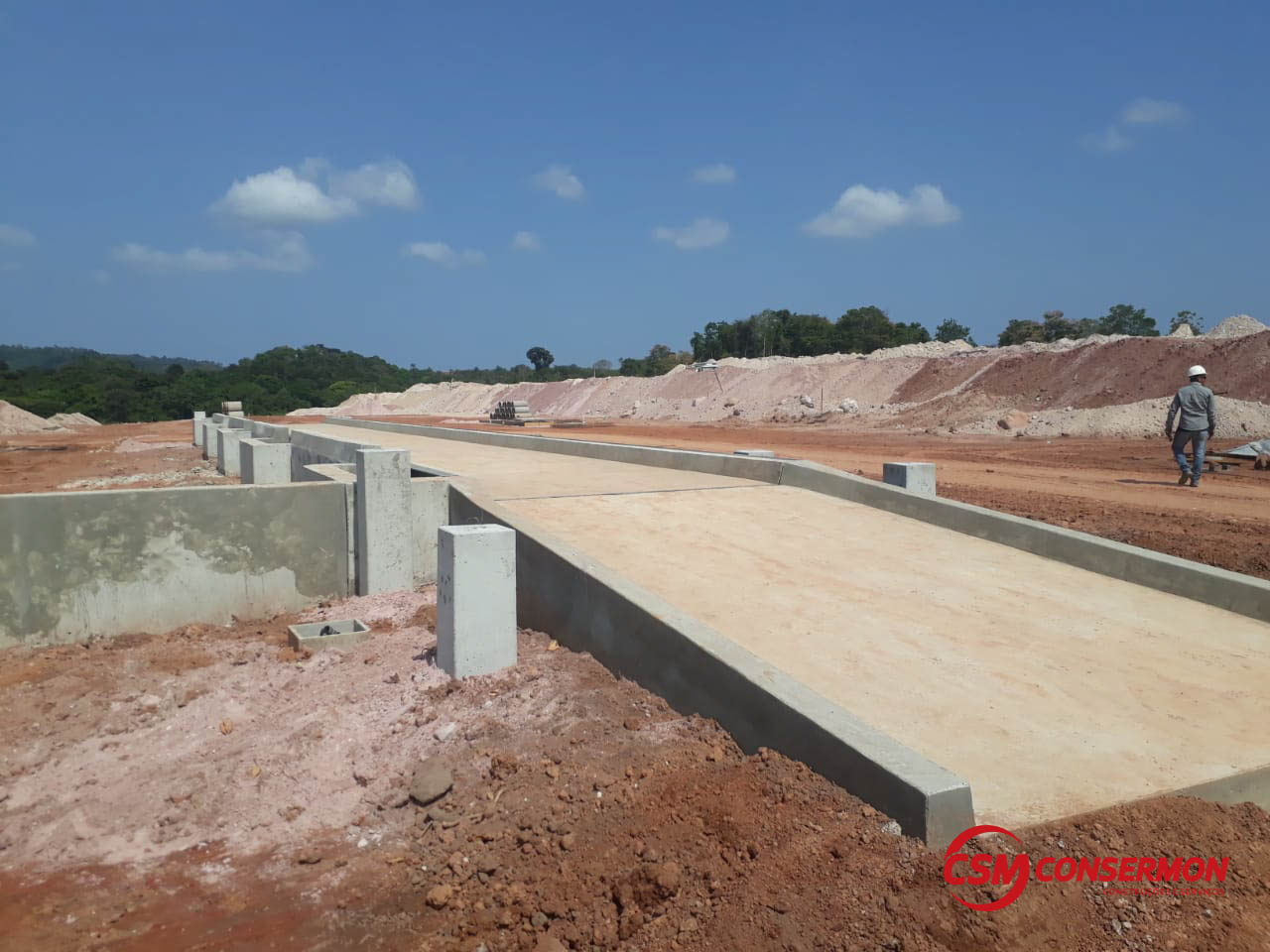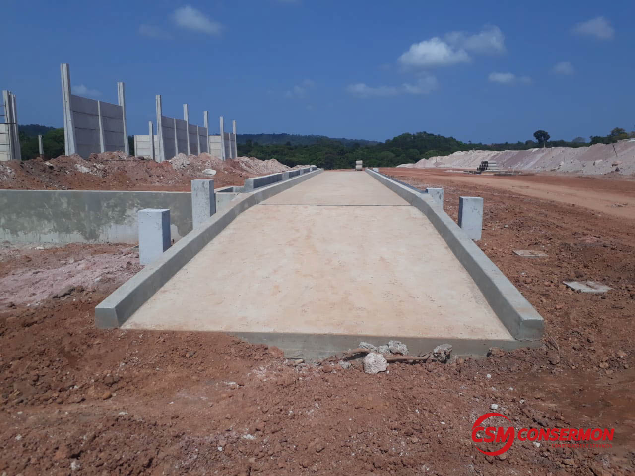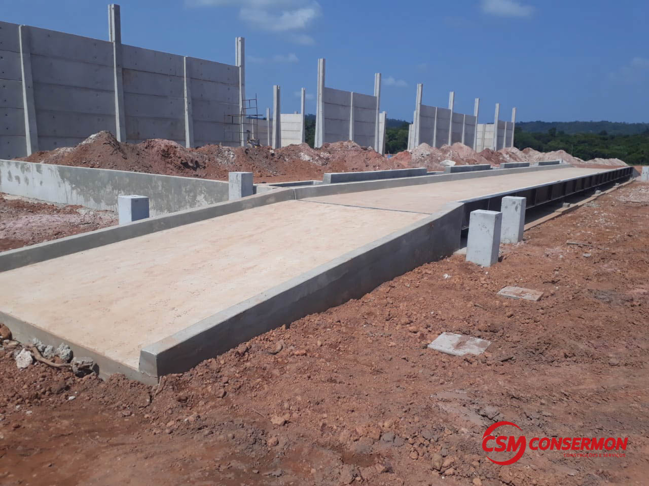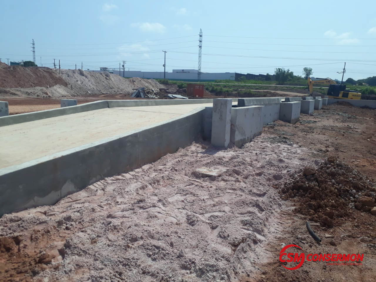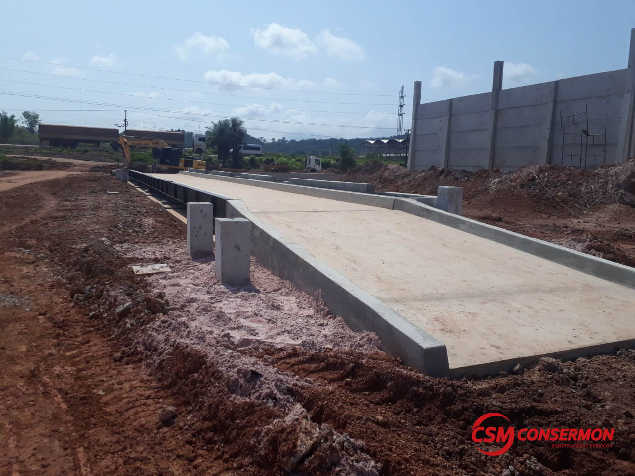 Obra: Balança Rodoviária TOLEDO 30 x 3,20 x 120t com bases para automação total, acessos laterais para encoste de máquina/acerto de peso e cortinas em concreto armado para muro de arrimo (terreno será aterrado entre o armazém e a balança).